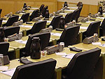 Global Equipment Network, Inc. offers the Delegate Microphone System for meetings and conference where each delegate requires a microphone. The system is ideal for meetings requiring precise audio recording (for transcription) or where a large conference room prohibits all participants from being heard. The Delegate Microphone System provides a Delegate Unit (Microphone) for each participant. The system is 'push to talk' which allows for accurate audio reproduction while eliminating open mics, a 'hot' room and background noise. Being a 'push to talk' system eliminates the need for a large mixing console and the need for a technician to 'ride gain' to turn mics on and off. The system utilizes a bus line which allows multiple microphones to be daisy chained eliminating the myriad of microphone cables associated with a typical desk mic setup. By allowing each participant to have a microphone at their seat stimulates a more interactive event due to the delegate not having to wait for a roving microphone. Suited for larger venues, a lighted mic tip indicates who is speaking. The units also includes a headphone out jack for Assistive Listening and a tape record jack for a participant to make a recording of the proceedings. |